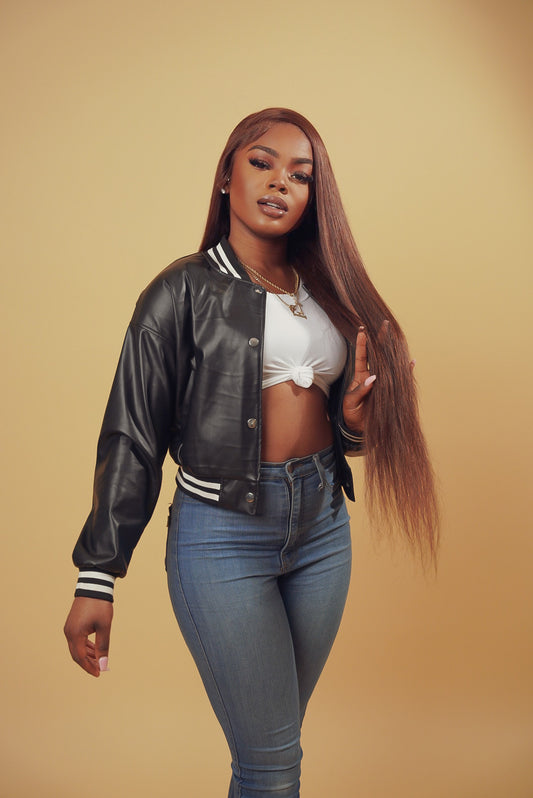 On the go Faux Leather Varsity Jacket